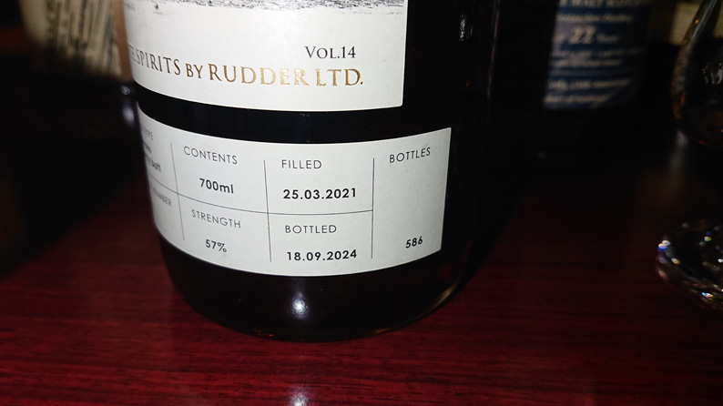 5杯めはラダーさんの百世不磨の第14弾、御岳、2021年蒸留、3年、57.5度を頼みました。