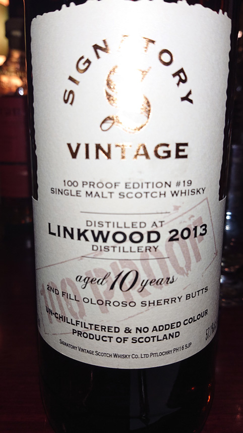 6杯めは、シグナトリーのリンクウッド、2013年蒸留、10年、57.1度を頼みました。