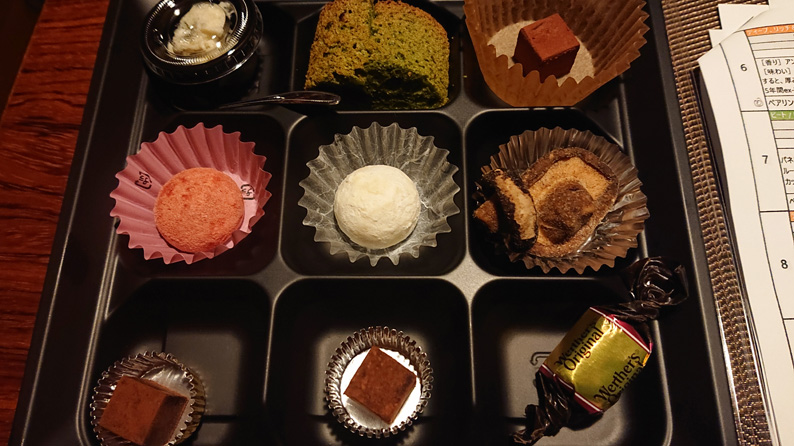 モルティー、フルーティー、ハーブ系のウイスキーで、それに合わせたんですが、いちごの方はモルティーさに変化、甘さがちょっとひかえめになり、ショコラの方は味の感じが結構濃いめに変化するというそれぞれ変わった変化をして面白く美味しかったですね。