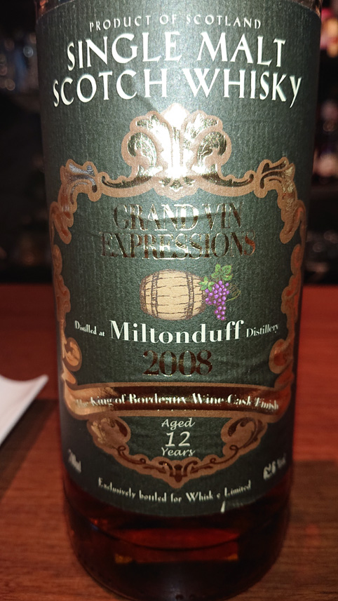 3杯めはグランヴァンエクスプレッションのミルトンダフ、2008年蒸留、12年、62.6度を頼みました。