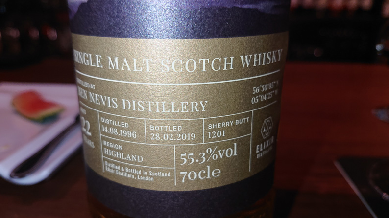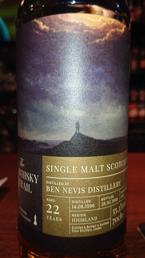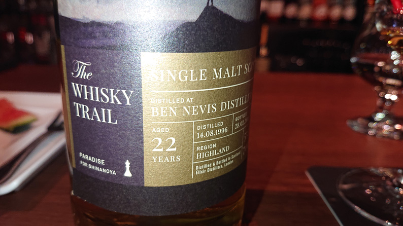 4杯めはウイスキートレイルのベンネヴィス、1996年蒸留、22年、55.3度を頼みました。