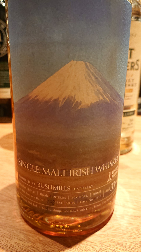 香りはかなりのトロピカルフルーツとフローラルで、味はともかく白桃からのトロピカルフルーツ、フローラルに奥底にちょっとした苦みを感じる、かなりフルーツ爆弾なウイスキーで、上質のアイリッシュの経験値を増やすことが出来ました。