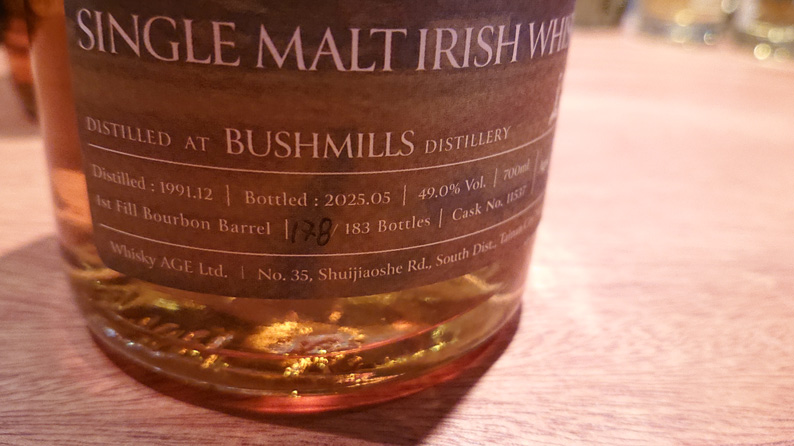3杯めはカウンター上に置かれていた、最近入荷したというウイスキーパシフィックのブッシュミルズ、1991年蒸留、33年、49.0度を頼みました。