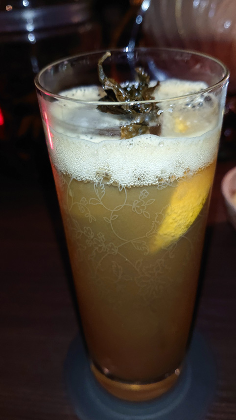 まずはトップ画像の自家製抹茶リキュールのトニック割を頼みました。