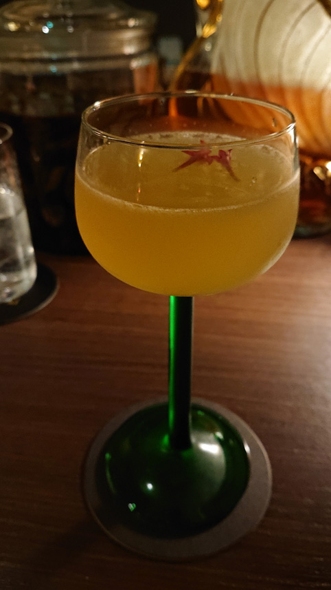 アイラウイスキー(ラフロイグが入っているので当然ですが)に複雑味を加える感じで、シャリュトリューズも入っているので薬草感とかレモンの酸味もありで、結構美味しいカクテルでしたね。