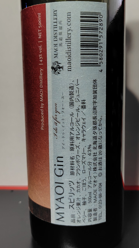 今回は北海道は馬追蒸留所の「MYAOI GIN I do it for you」のレビューをしていきます。